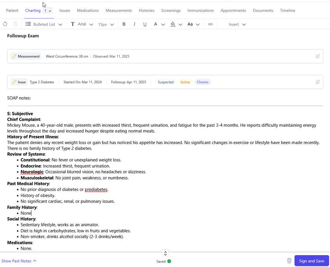 As you continue your appointment with Mickey, you suspect he may have Type 2 Diabetes. We will use an Issue to capture this information within the Chart Note.